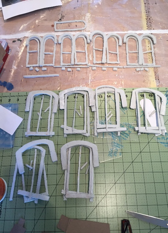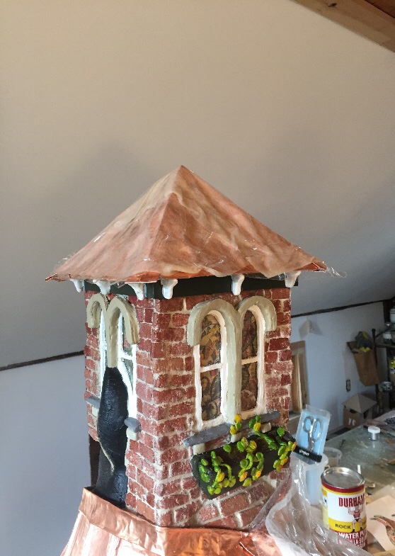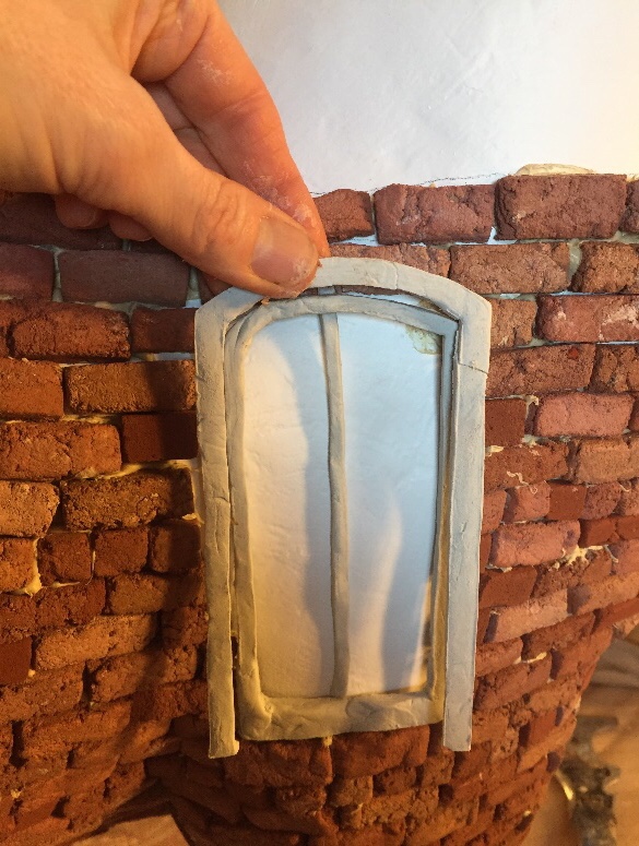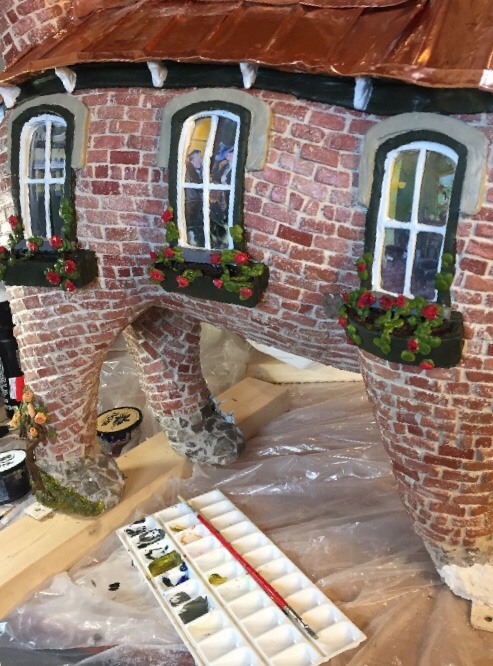 Window frames, flower boxes, flowers and other details were all made from a two part modeling clay called Apoxie. I used five pounds of it.